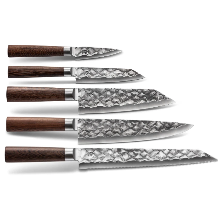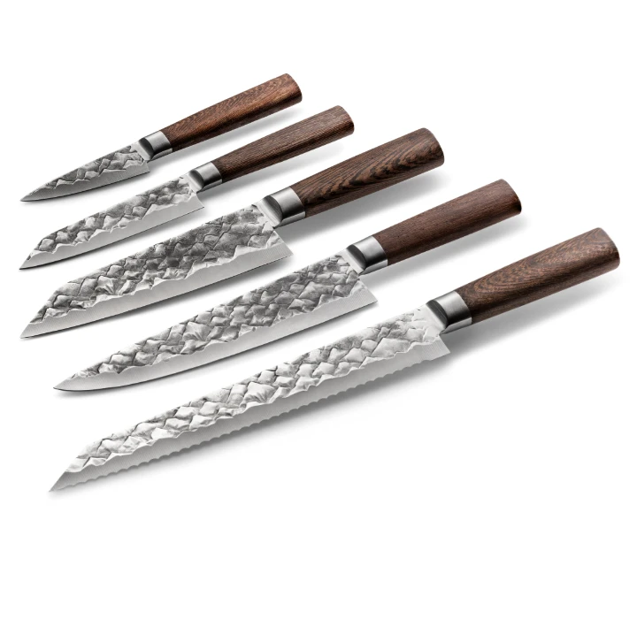 205mm Chef’s knife – Een geweldig mes verandert zelfs de meest vervelende klus in iets om naar uit te kijken, door een ui in seconden te hakken en in minuten een complete salade te bereiden. Het 8-inch koksmes is waarschijnlijk het meest veelzijdige hulpmiddel in uw keuken, of je nu een thuiskok of een Michelin-sterchef bent. Met dit enkele mes kun je alles snijden, in blokjes snijden, in plakjes snijden, fijnhakken en hakken, van fijne vis tot verse groenten.