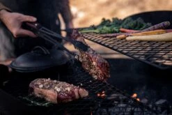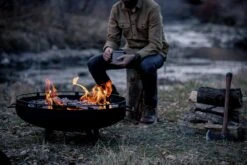 Na gebruik makkelijk op te bergen door de demontabele poten en accessoire organizer. Als accessoires zijn het grillrooster en een side table verkrijgbaar. De cowboy fire pit base wordt geleverd met een in hoogte verstelbare grill rooster en hangstang voor kookgereedschap.