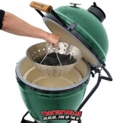 De Big Green Egg Kolenmand is een erg handige rvs-mand waar het houtskool in ligt en maakt het schoonmaken van Big Green Egg een stuk makkelijker. Het zorgt voor betere luchtdoorstroming, minder onderhoud en meer comfort bij het bijvullen en aansteken. De twee handige handgrepen bieden een gemakkelijke manier om het as eruit te schudden.