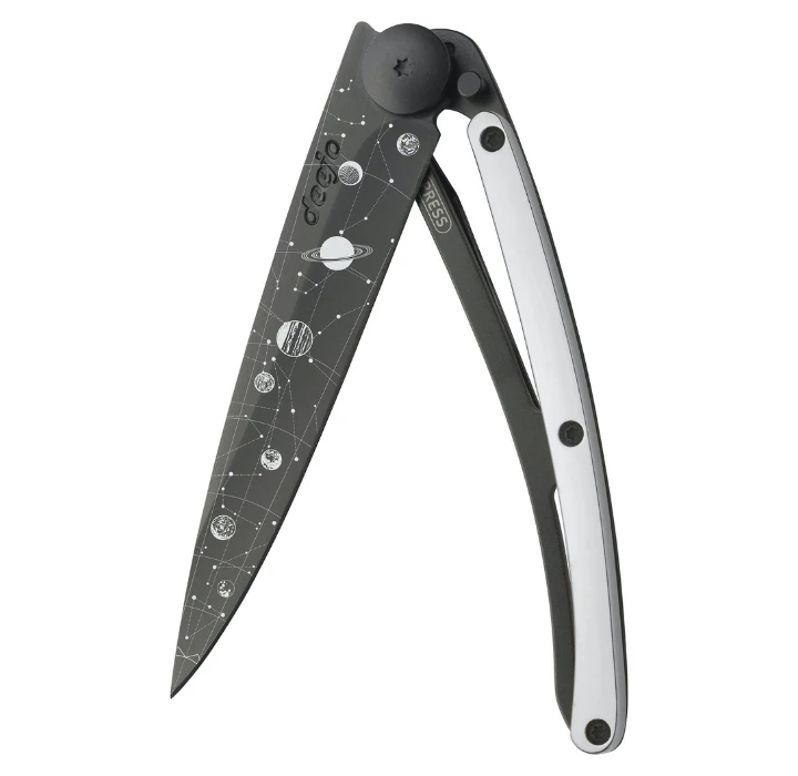 Dit 27 grams ultra lichtgewicht zakmes met witgoud verguld heft en mirror finish is de perfecte toevoeging aan je dagelijkse gear. Of het nou gaat om een appeltje schillen, brief openen of wat touw doorsnijden, dit flinterdunne vlijmscherpe mes is je beste kamaraad voor de klus. Sophisticated genoeg voor je kantoorbaan, uniek genoeg om je vrienden te verbazen en minimalistisch genoeg om geen gram teveel toe te voegen aan je outdoor-uitrusting. Met deze gave Deejo kom je fris voor de dag.