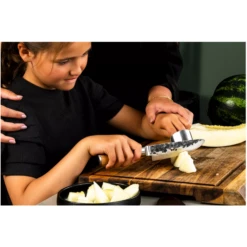 Jong geleerd is oud gedaan. Voor de kleine chefs onder ons is dit erg belangrijk zodat zij op een verantwoorde en veilige manier kunnen helpen met koken en bakken. Forged heeft daarom speciaal voor kinderen een koksmes ontworpen! Het kinderkoksmes wordt geleverd met een vingerbeschermer en leren etui, zodat het niet alleen zonder gevaar kan worden gebruikt, maar ook direct daarna veilig kan worden opgeborgen. Verpakt in een luxe houten doos.