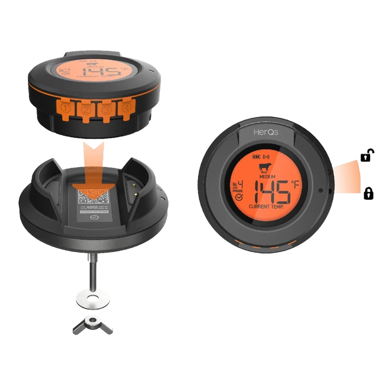 Digitale Dome thermometer voorzien van 2 probes voor het meten van je favoriete stukje vlees! Deze digitale thermometer vervangt je huidige dome thermometer. Via de app op je mobiele telefoon, tablet of Apple Watch heb je eenvoudig inzicht in de temperaturen van je BBQ.