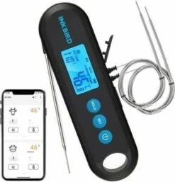 De INKBIRD IHT-2PB is een handige Bluetooth vleesthermometer ontworpen met twee externe sondes met functies zoals auto-sleep, temperatuuralarmen, countdown timers en temperatuurkalibratie, die een goede buddy is voor grillen en dagelijks gebruik.