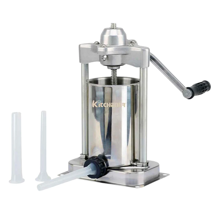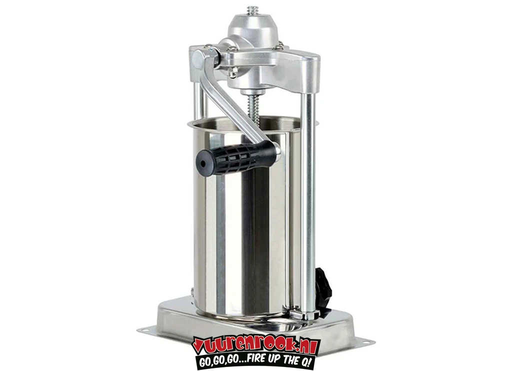 Robuuste roestvrijstalen worstvuller met een capaciteit van 4.5 liter. Op RVS bodemplaat voor een optimale stabiliteit van de worstvuller. De worstvuller kan op elk oppervlak worden bevestigd via de geïntegreerde gaten in de bodemplaat. Door de roestvrijstalen ontluchtingsklep in de drukplaat kan de lucht ontsnappen tijdens het vulproces. De roestvrijstalen bus kan eenvoudig en moeiteloos worden verwijderd voor het vullen, maar ook voor latere reiniging (vaatwasbestendig). Inclusief drie kunststof worstvulpijpen met diameters van 17, 21.6 en 30.5 mm.
