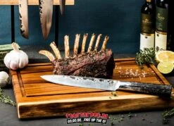 Deze snijplank van Laguiole is gemaakt van acaciahout. De snijplank is voorzien van antislip voetjes aan de onderkant, een sapgeul en handgrepen.