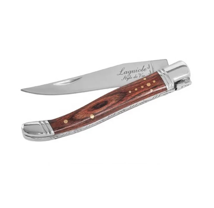Laguiole Zakmes Rozenhout + Aanzetstaal En Leren Hoesje