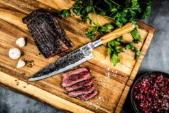 Het merk Forged staat voor een bijzondere en opvallende koksmessencollectie. Door het bijzondere uiterlijk, de mooie verpakking en het volledige handwerk zal dit menig messenliefhebber zijn hart sneller doen laten kloppen. 100% handgesmeed, verpakt in bijzonder gebrand houten kistje. Ieder mes is een UNIEK stuk! Verpakt in een luxe houten kist. NIET vaatwasmachinebestendig. Direct na het afwassen drogen met een doek. De Olive Forged messen collectie is verkrijgbaar als losse messen of als 3-delige messenset. De collectie bestaat uit een: Koksmes, Universeel mes, Hakbijl, Broodmes, Vleesmes, Schilmes.