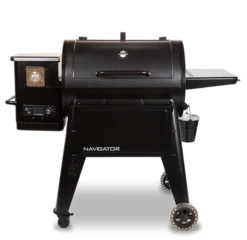 Extra kenmerken van de Pit Boss 850 Navigator Series zijn een op maat gemaakte hoes voor zware over de volledige lengte, één bijgeleverde vleessonde, een grote hoppercapaciteit (12.7 kg), een groot pelletvenster, pelletklepuitsparing, versterkte poten, een hoge-temperatuur poedercoating, een modulair rek van voor tot onder, ingebouwde gereedschapshaken, vergrendelbare zwenkwielen en de beste Pit Boss-garantie in zijn klasse van 5 jaar.