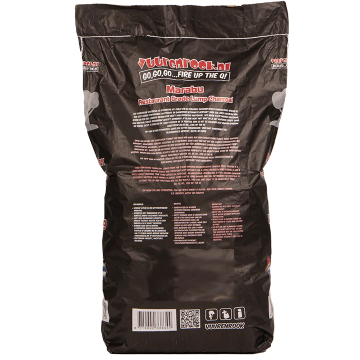 Dit Vuur&Rook houtskool is afkomstig van de Marabu – Dichrostachys Cinera boom. Marabu is een zeer harde stok vormige houtsoort en daardoor uitermate geschikt voor een lange Low&Slow BBQ sessie en een veel langere brandduur heeft dan Europees houtskool. Het mooie is dat Marabu houtskool een neutrale milde rooksmaak afgeeft. Wanneer je klaar bent met BBQ’en en je het houtskool dooft door de deksel dicht te doen en de luchttoevoer af te sluiten, kun je het de volgende keer gewoon opnieuw aansteken!
